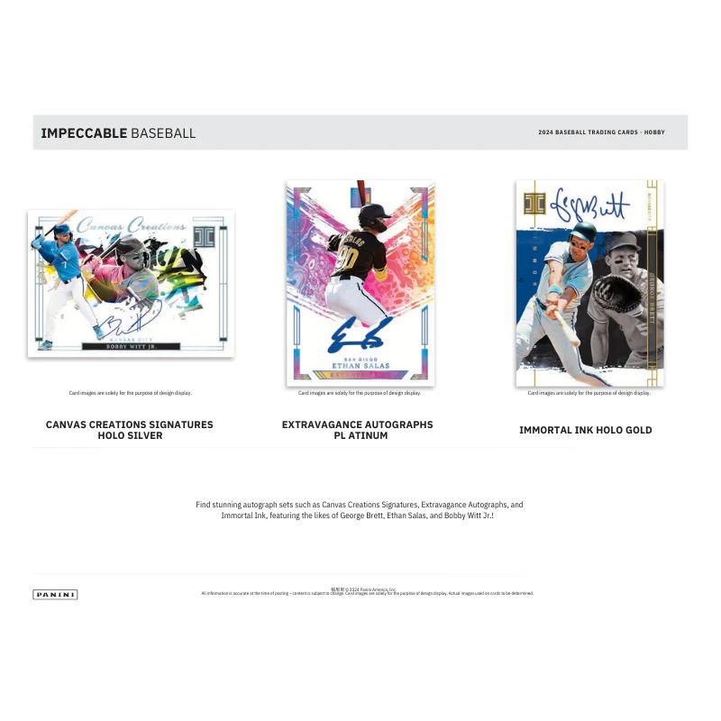 - Find stunning autograph sets such as Canvas Creations Signatures, Extravagance Autographs, and Immortal Ink, featuring the likes of George Brett, Ethan Salas, and Bobby Witt Jr.!