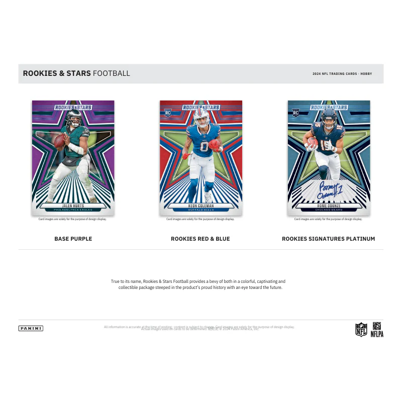 - From current stars to the most potential-packed newcomers, 2024 Rookies & Stars Football packs a punch with powerful autograph-memorabilia combinations and chase-worthy inserts.