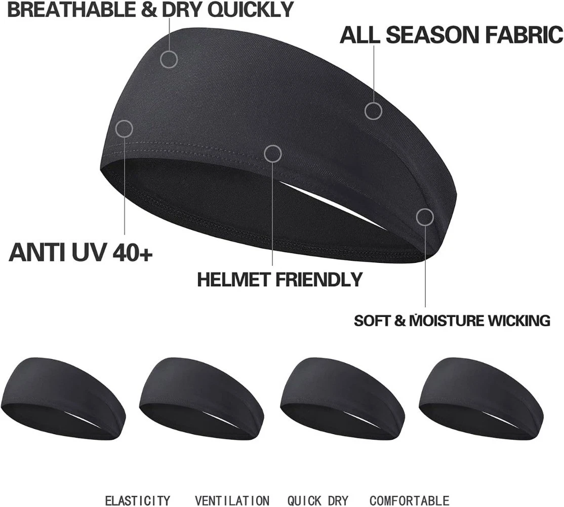 5 Pack Workout Headbands - Moisture Wicking Sports Sweatbands for Men & Women